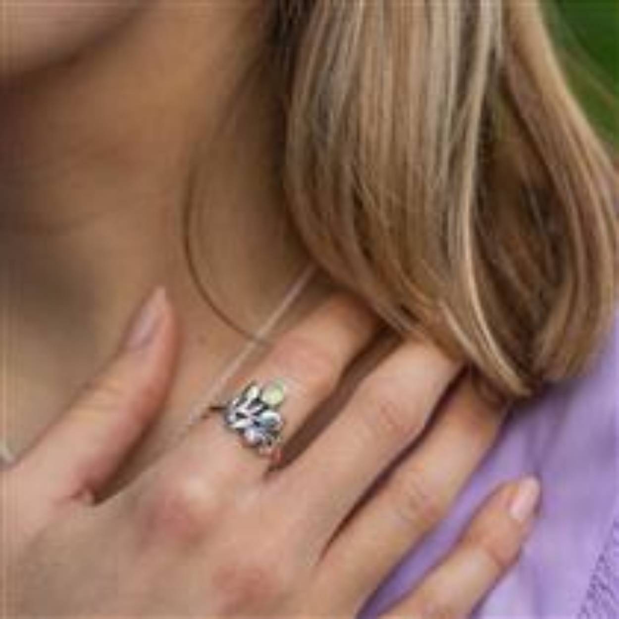 Deze sterling zilveren ring bevat een 6 x 4 mm chalcedoon en een 2,5 mm ronde zirkonia.