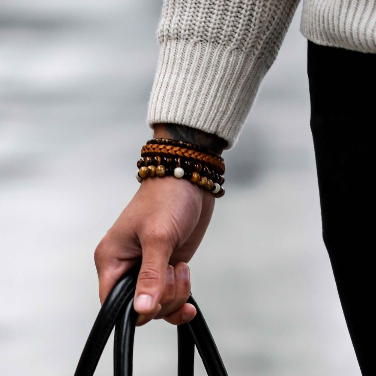 Edelstenen bead armband, handgemaakt van 8mm Tijgeroog mix stenen met een zilverkleurige sluiting.