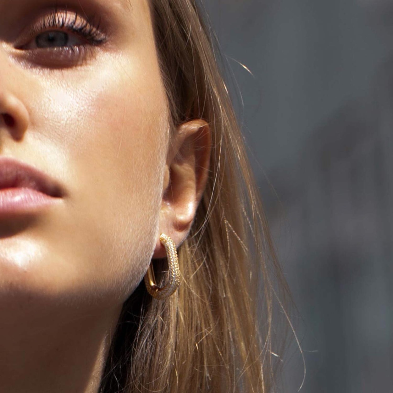 Oorbellen uit de exclusieve Capri serie van 18 karaats verguld 925 Sterling zilver, glanzend oppervlak en facetgeslepen witte zirkonia.