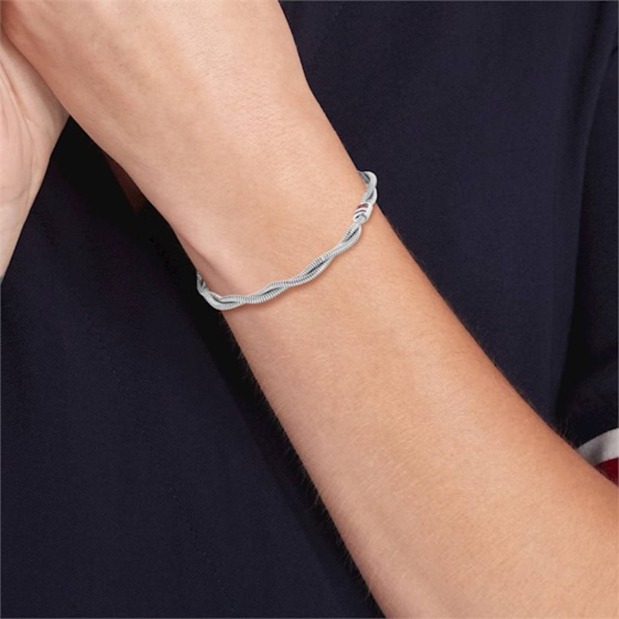 Gedraaide snake armband zilverkleurig edelstaal 20 cm