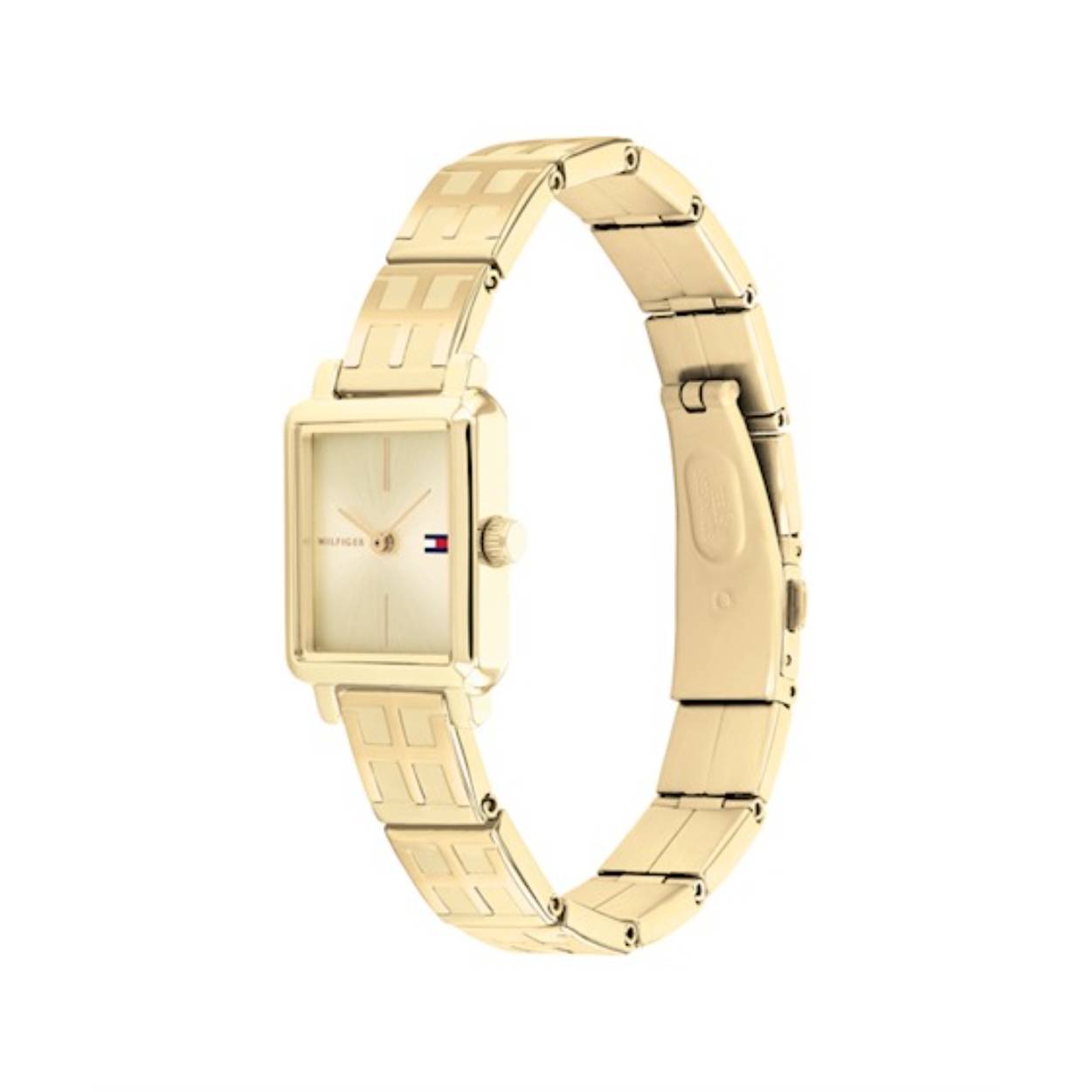 Tommy Hilfiger dameshorloge model TH1782326 Tea Square uitgevoerd in staal met een geelgouden vergulding.