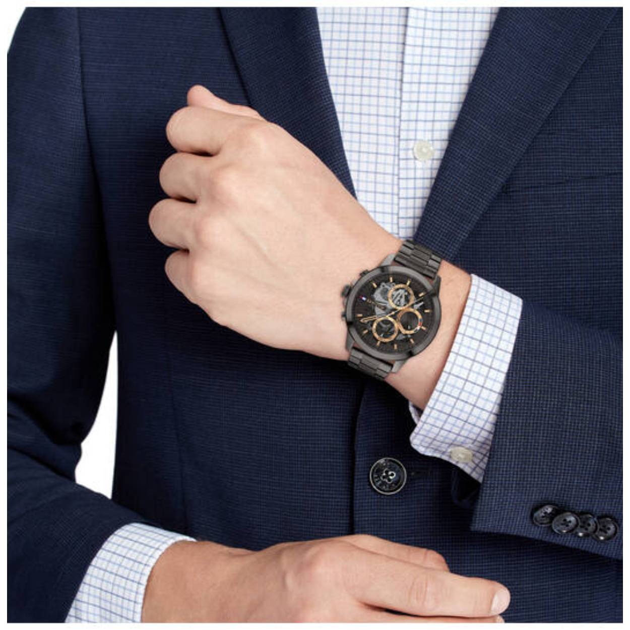 Dit is een herenhorloge van het merk Tommy Hilfiger uit de serie Henry. Met een horlogekast gemaakt van staal en een grijze band van staal.