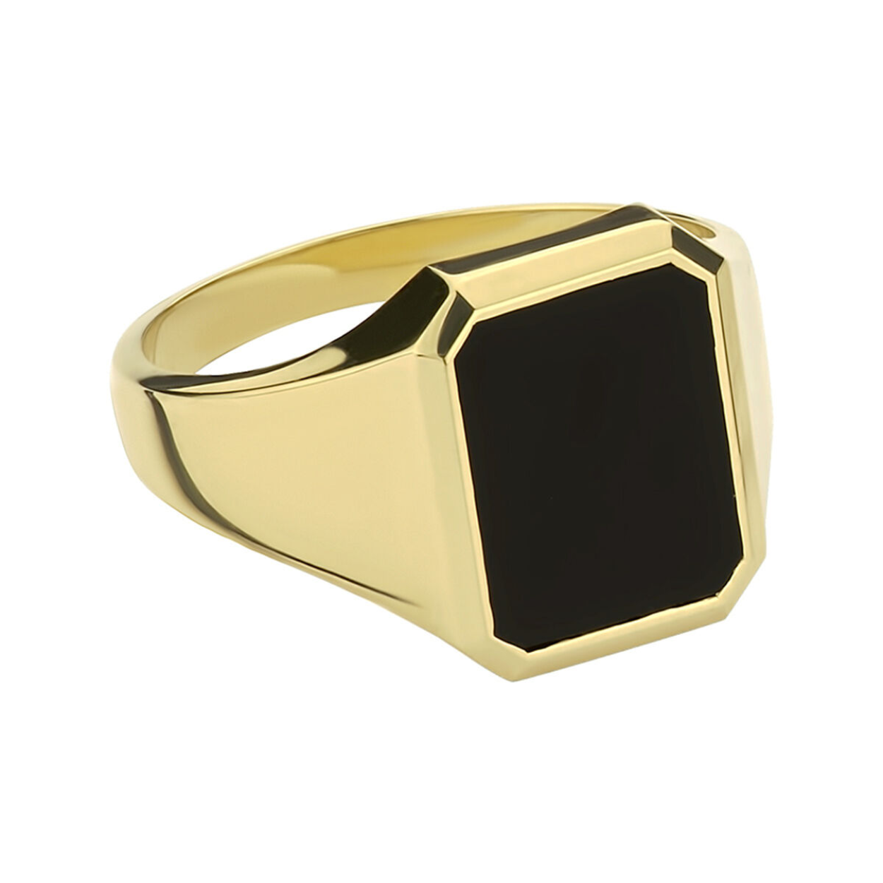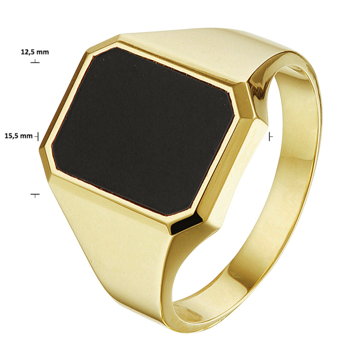 Beschrijving: Stijlvolle geelgouden zegelring uitgevoerd met een onyx steen. De robuuste afkanteningen van de ring maken dit sieraad helemaal af. De ring geeft je look direct een chique uitstraling.