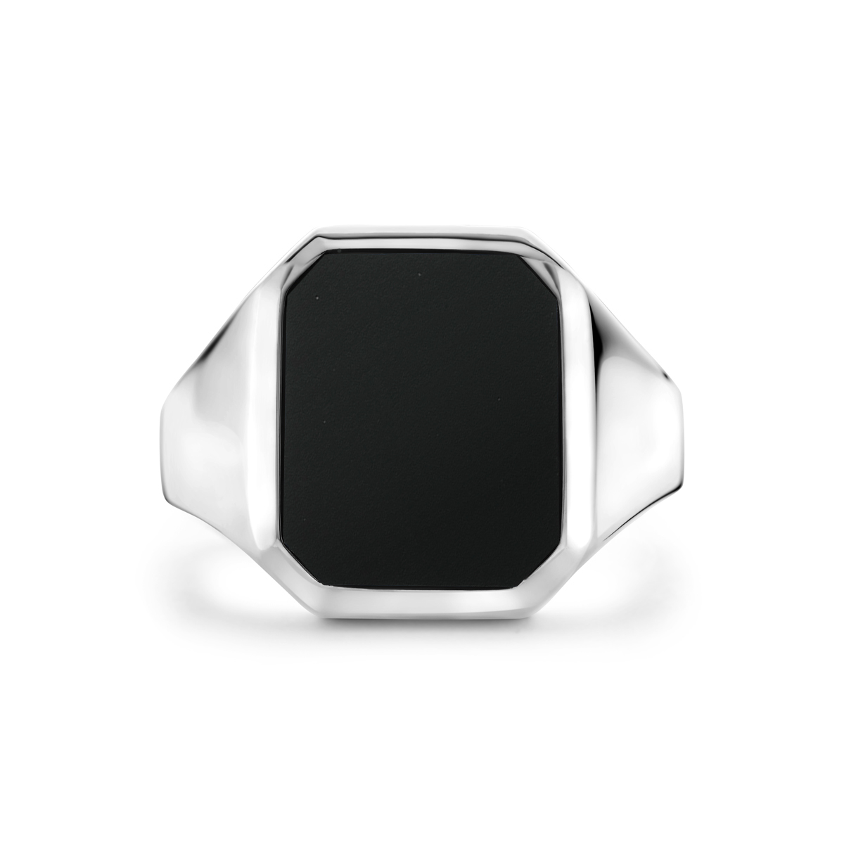 Gerhodineerd 925 zilveren zegelring met onyx.