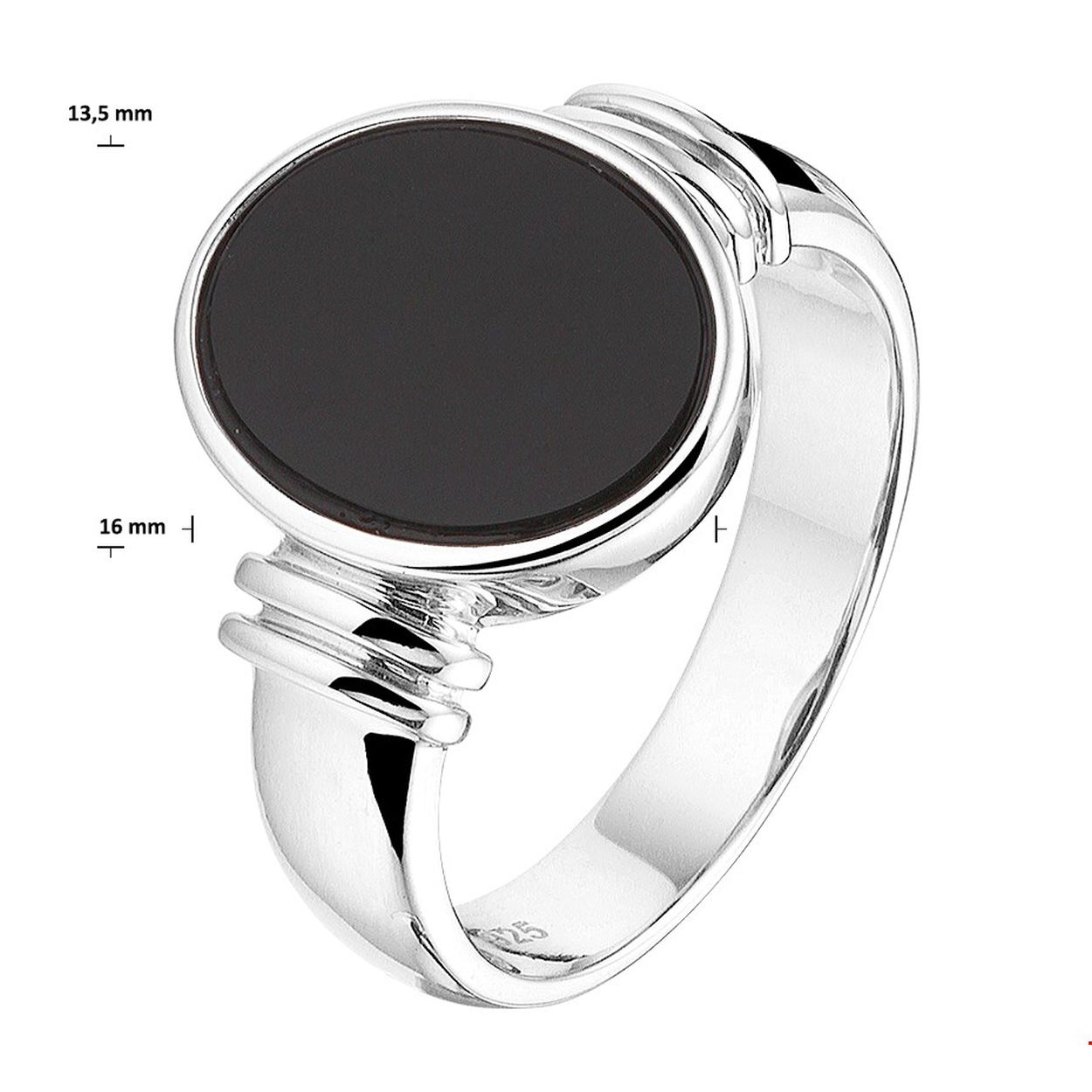 Beschrijving: Stijlvolle gerhodineerd zilveren ring met een onyx steen en een poli afwerking. Info: Gerhodineerd zilver is door de rhodiumlaag beter bestand tegen verkleuren en krassen.