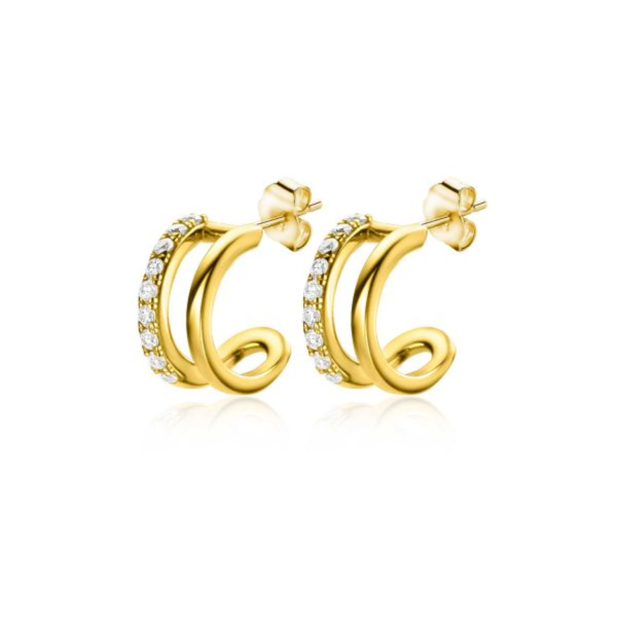 10mm ZINZI Gold 14 krt gouden fantasie oorstekers 10mm met multi-look uitstraling, 5mm breed ZGO382