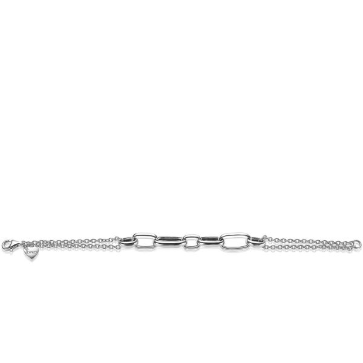 ZINZI zilveren armband met brede open ovale schakel, gecombineerd met dunne jasseron schakelkettinkjes. Deze mooie combinatie maakt de armband extra stijlvol. Bij sluiting herkenbaar ZINZI, door het zilveren Zinzi hartje. Vervaardigd van eerste gehalte zilver (925) en voorzien van een extra rodiumlaag voor een langdurige glans.