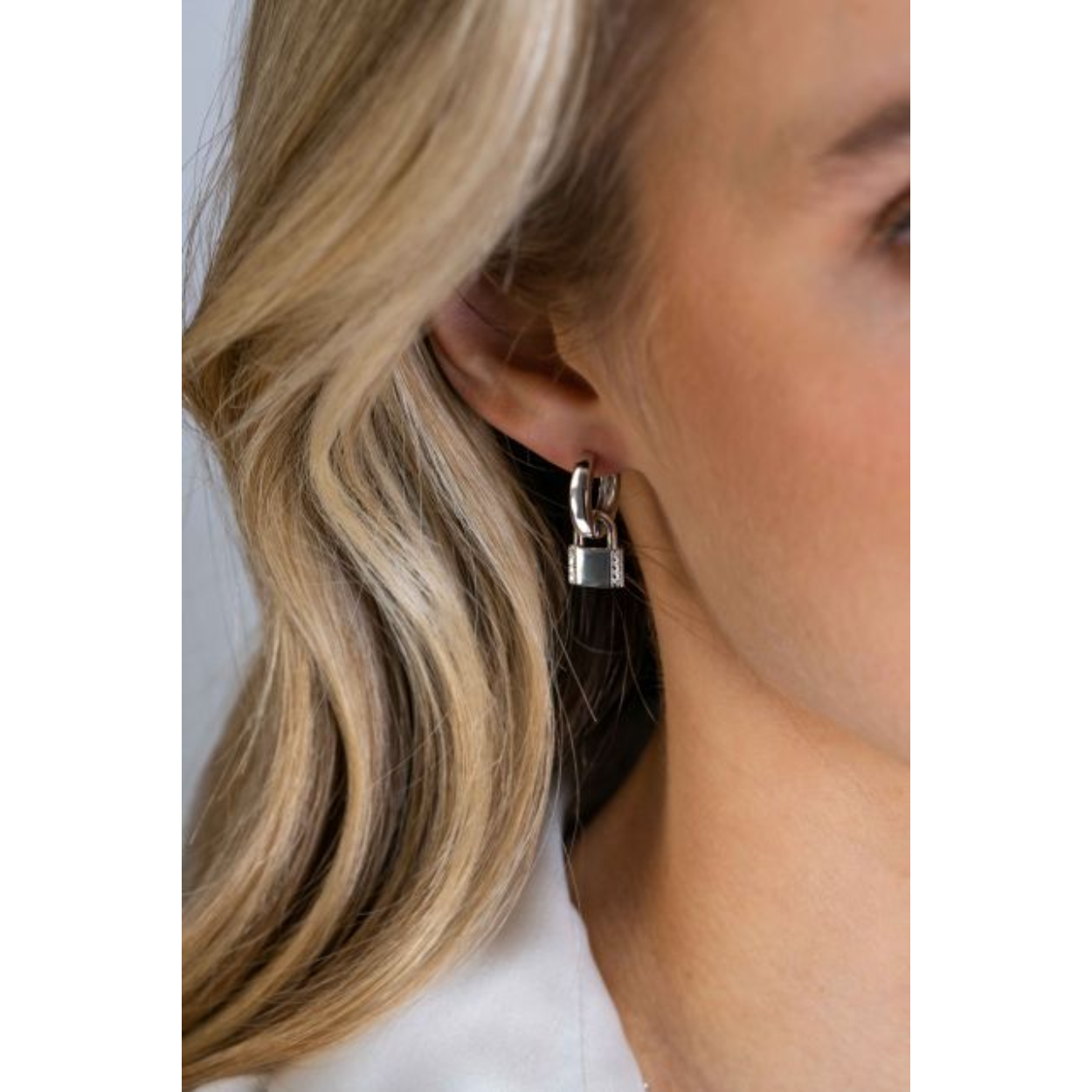 ZINZI zilveren oorbedels in de vorm van een slotje, bezet met witte zirconia's. Deze trendy oorbedels zijn 10mm groot. De oorringen zijn niet bij de prijs inbegrepen. Vervaardigd van eerste gehalte zilver (925) en met extra rodiumlaag.