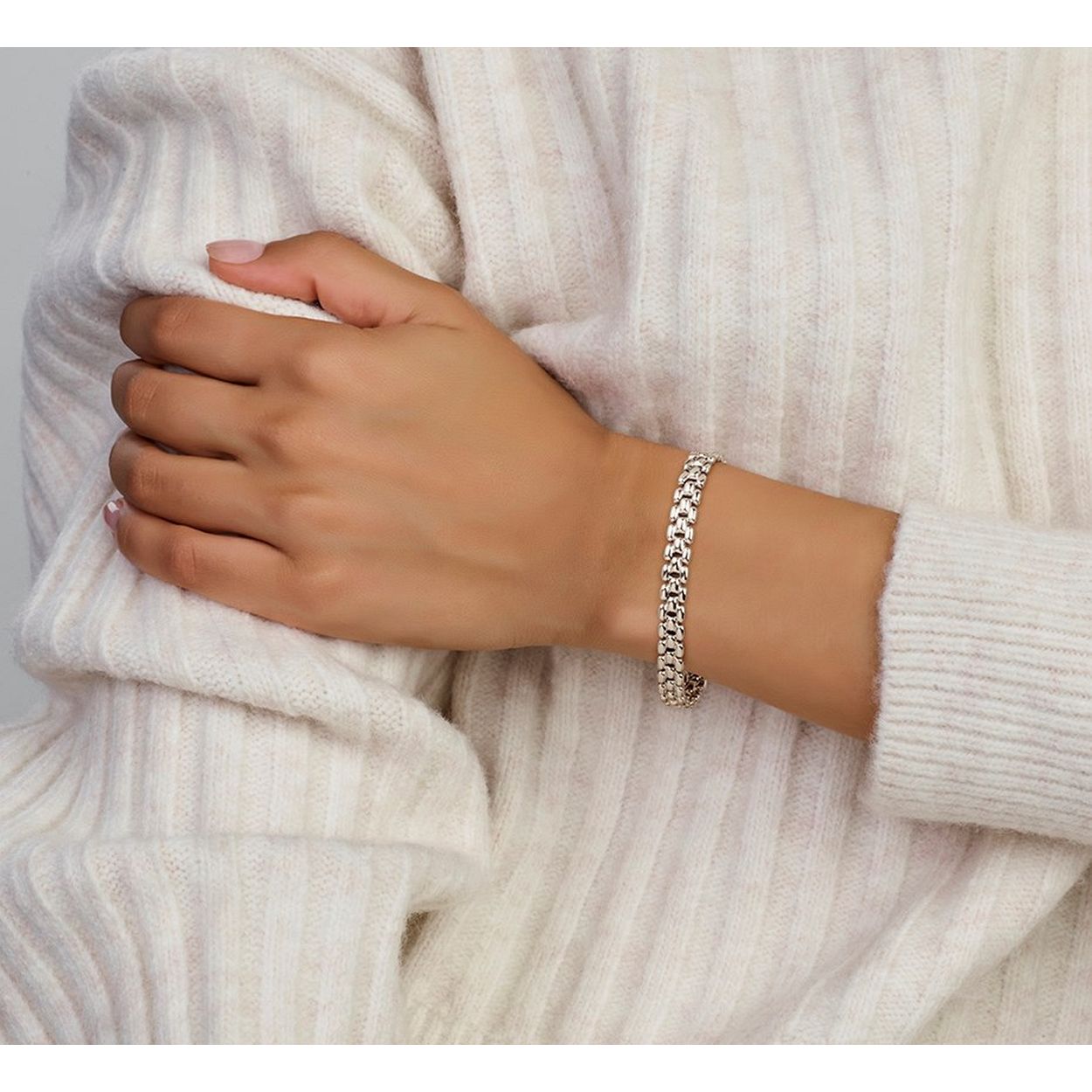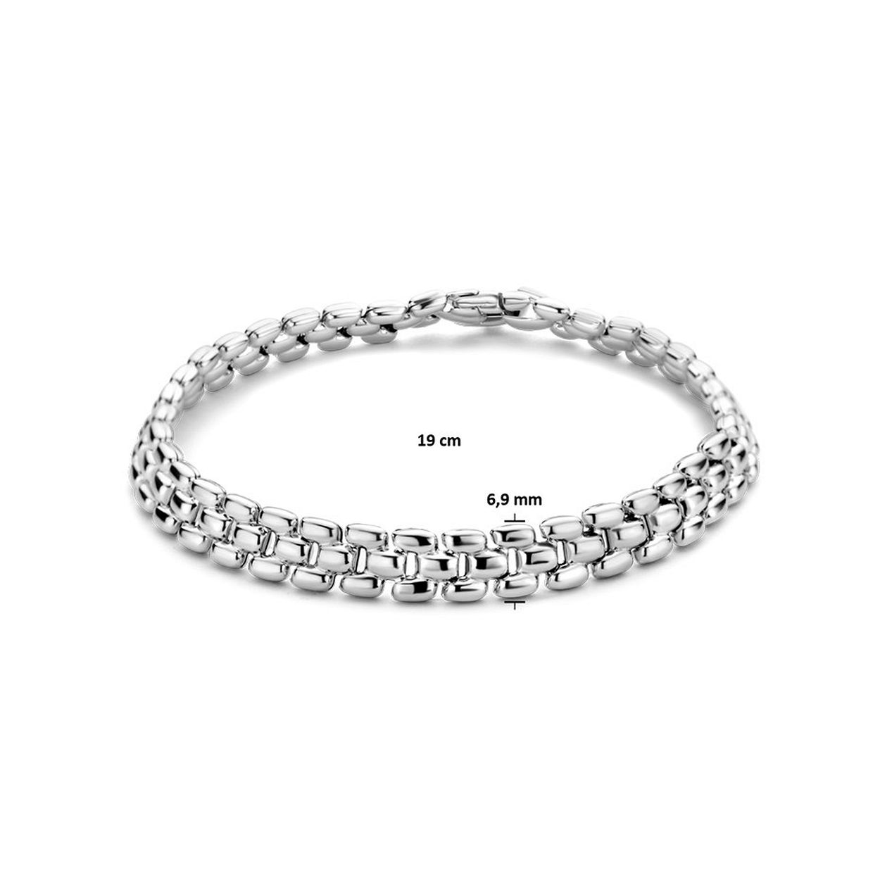 N814 Gerhodineerd 925 zilveren schakelarmband met een breedte van 6.9mm. De armband heeft een draaglengte van 19cm.