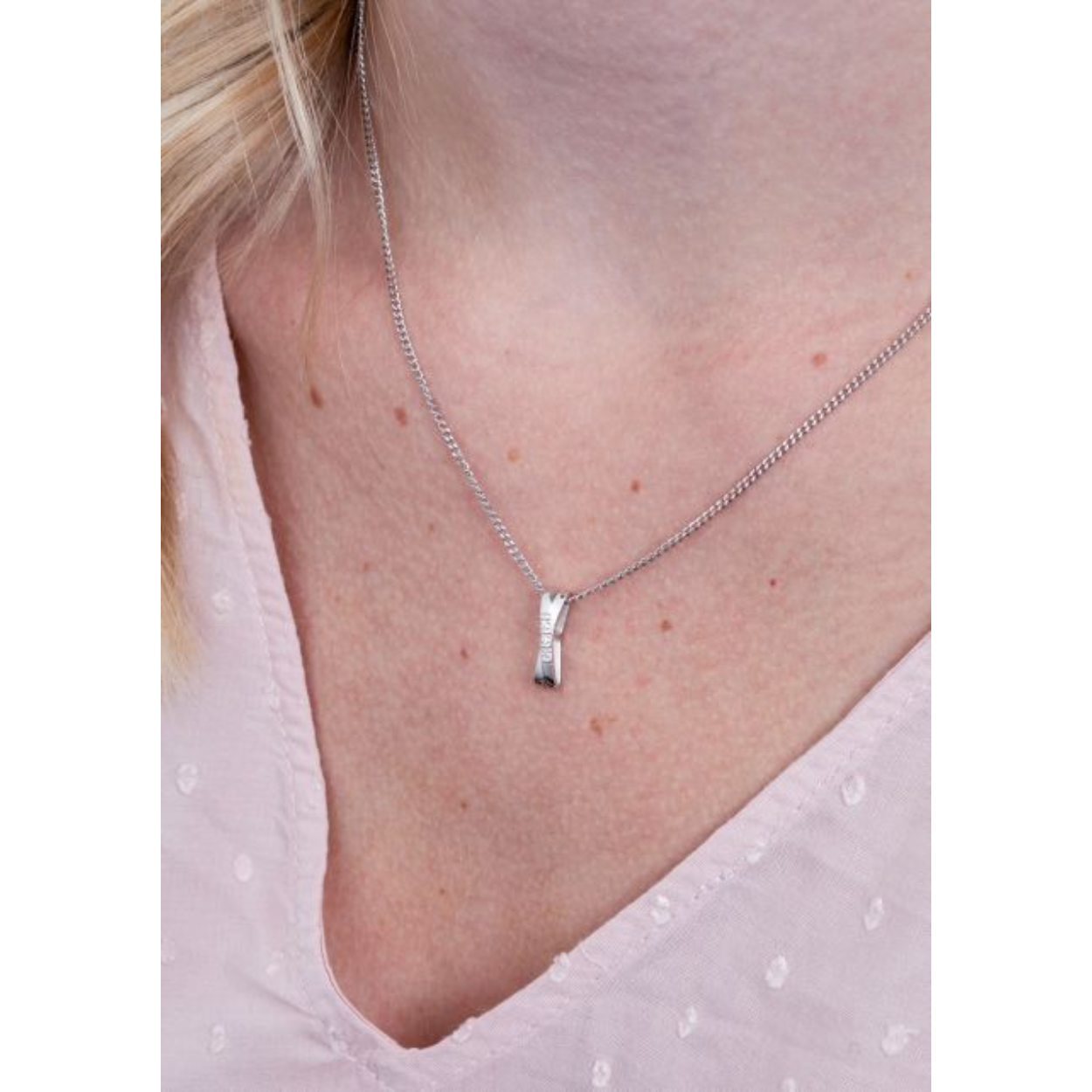 ZINZI zilveren hanger met trendy cross-over design. De hanger is in het midden mooi bezet met drie witte zirconia's. De hanger is 16mm lang. De hanger is exclusief ketting geprijsd.