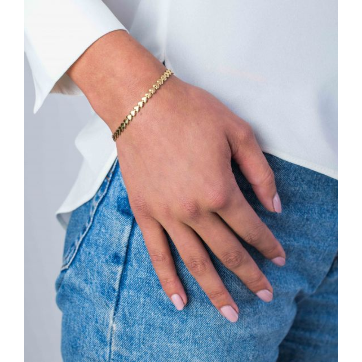 De ZINZI zilveren armband ZIA1798G is een prachtig geel verguld sieraad met hartjes. Gemaakt van 925 sterling zilver, deze fantasiearmband heeft een karabijnsluiting. Met een diameter van 190 mm, hoogte van 4.5 mm en breedte van 1.5 mm, is het ideaal om los of gecombineerd met andere armbanden te dragen. Perfect voor elke gelegenheid.