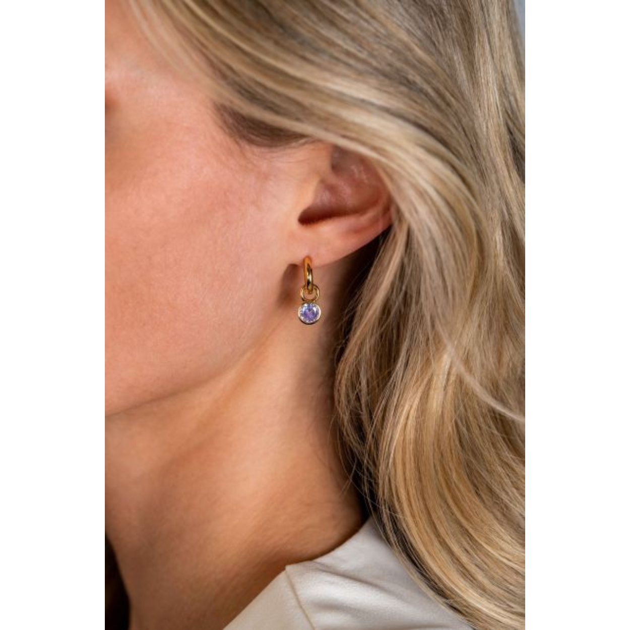 JUNI oorbedels gold plated maand met geboortesteen licht paars amethist zirconia (excl. oorringen)