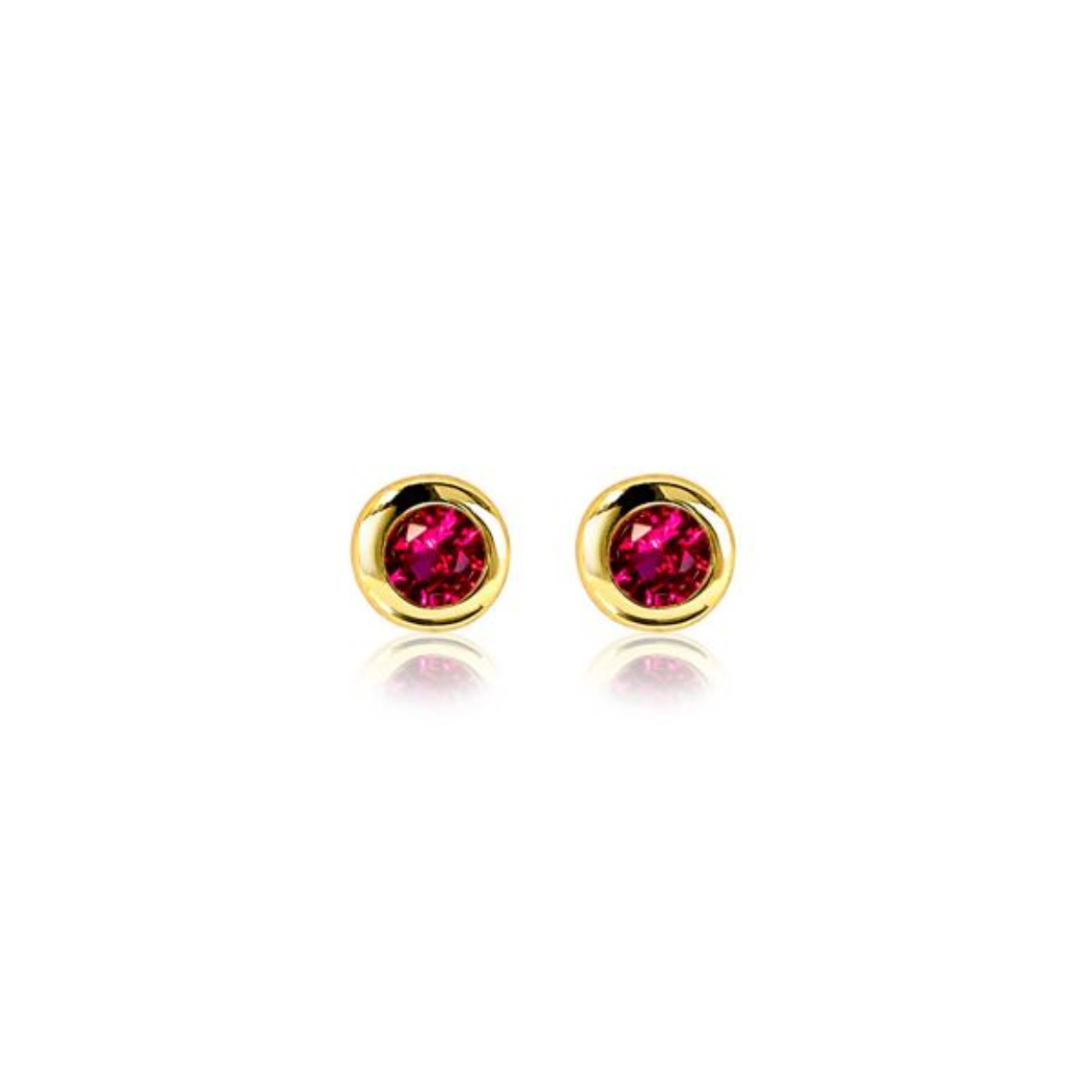 JULI oorknoppen 4mm gold plated met geboortesteen rood robijn zirconia