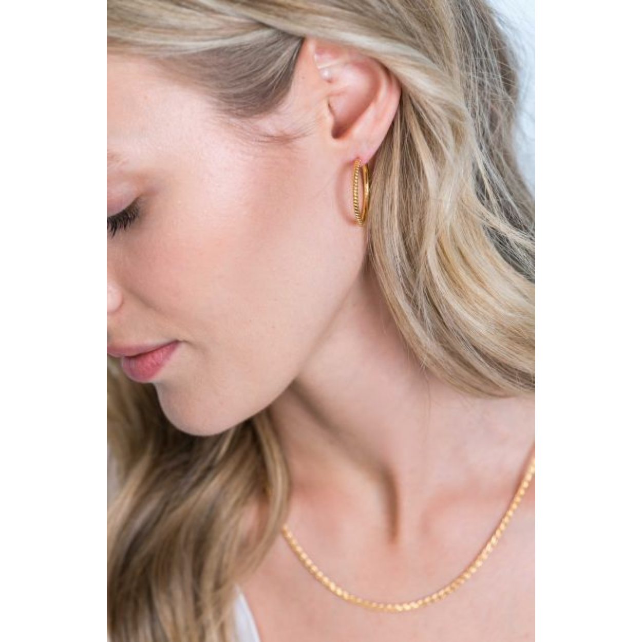 ZINZI zilveren grote oorringen 25mm in 14K geelverguld met gedraaid motief en met luxueuse scharniersluiting. De grootte van deze oorsieraden is 25 x 2mm.
