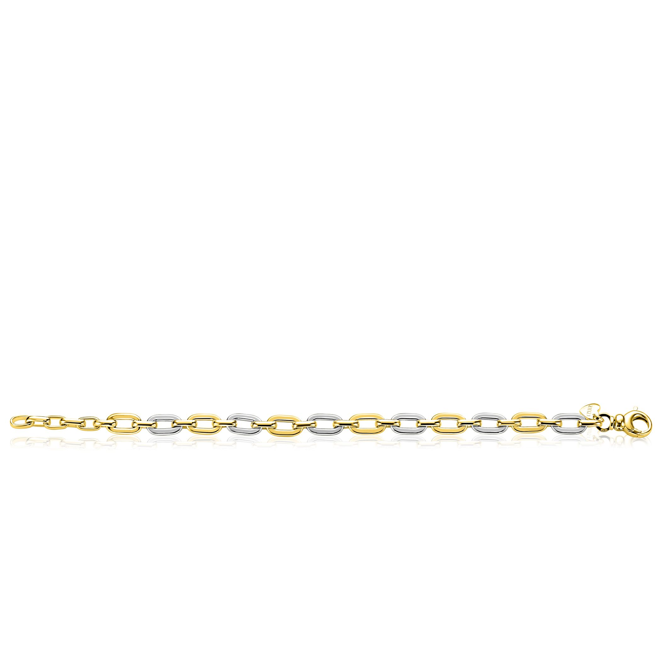 De ZINZI zlv. armband bicolor met ovale schakels, modelnummer ZIA2757, is een stijlvolle mix van zilver en goud. Deze armband, gecategoriseerd als sieraad en specifiek als armband, voegt een elegante uitstraling toe aan elke outfit. Draag hem solo voor een subtiele look of combineer met andere armbanden voor een trendy, gelaagde stijl.