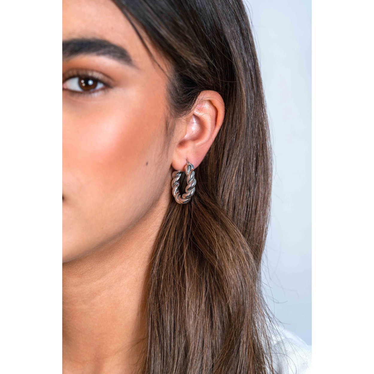 ZINZI zilveren trendy wokkel oorringen met gedraaide buis. De oorringen zijn 27mm in doorsnede en 6mm breed.
