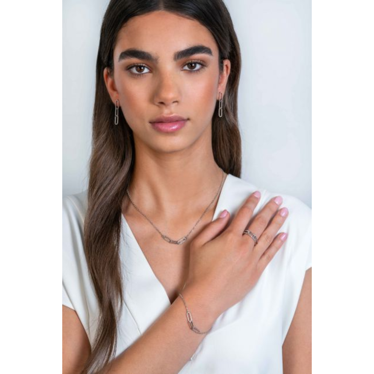ZINZI zilveren lange oorsieraden 30mm met drie trendy paperclip-schakels: met gedraaide buis, gladde buis en bezet met witte zirconia's. Vervaardigd van eerste gehalte zilver (925) en voorzien van een extra rodiumlaag voor een langdurige glans.