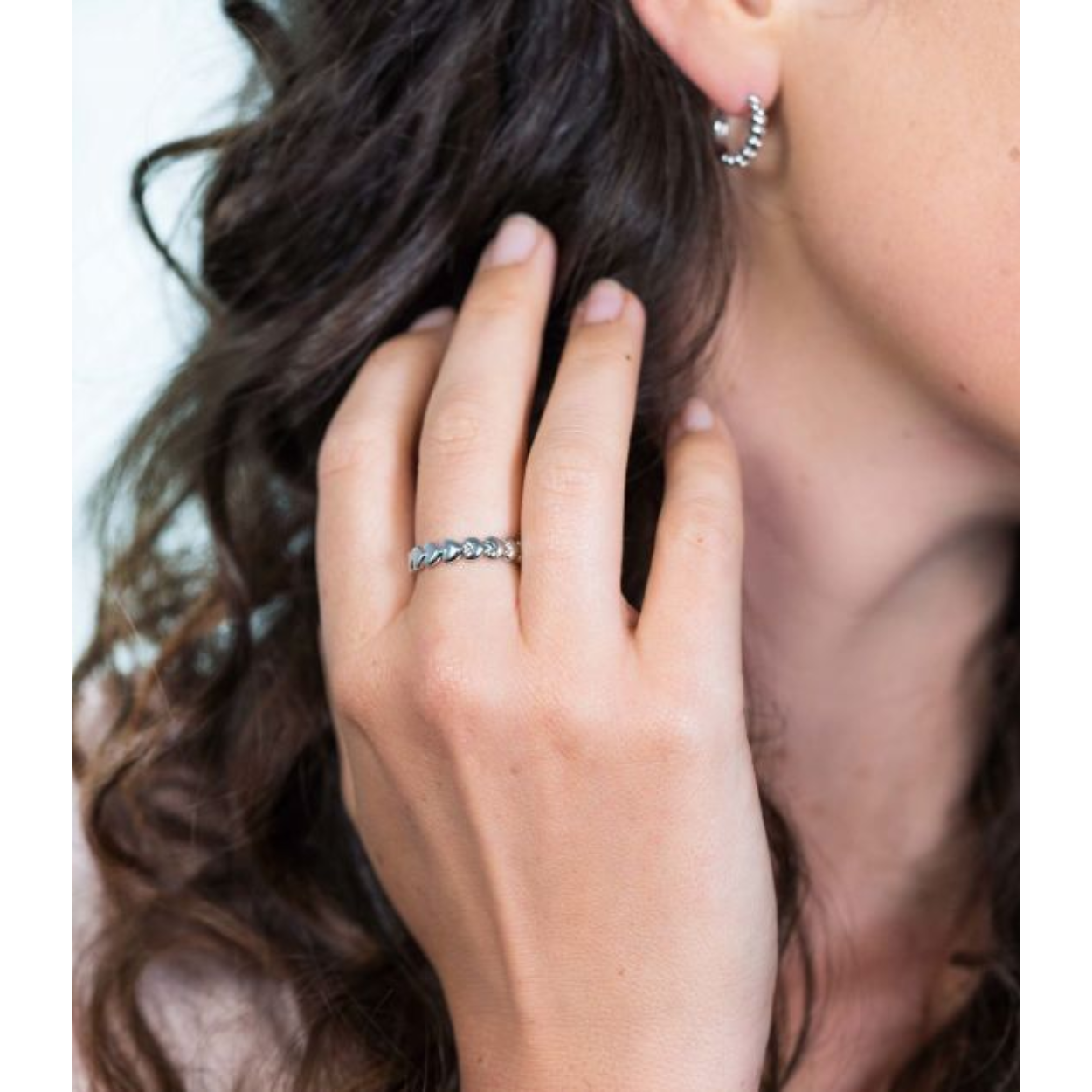 ZINZI zilveren ring rondom gezet met zilveren hartjes. Gemakkelijk te combineren met andere zilveren Zinzi ringen. Mix & match!