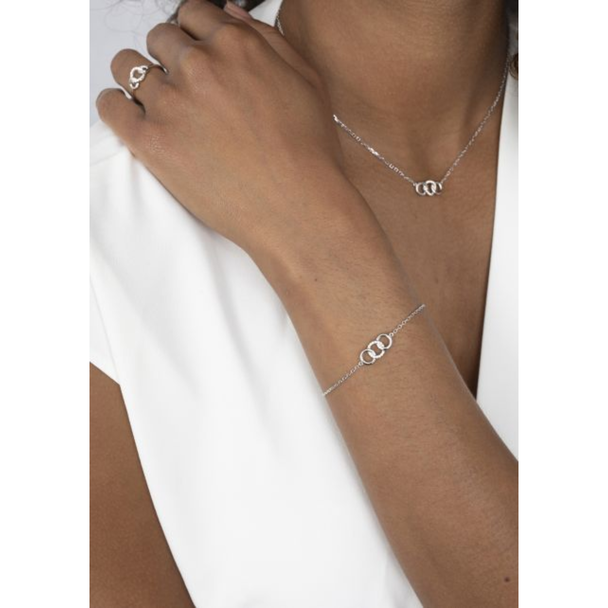 ZINZI zilveren ring met in het midden drie mooie ronde schakels die met elkaar verbonden zijn. De middelste schakel (8mm) is bezet met witte zirconia's en wordt sierlijk ingesloten door twee gladde schakels.