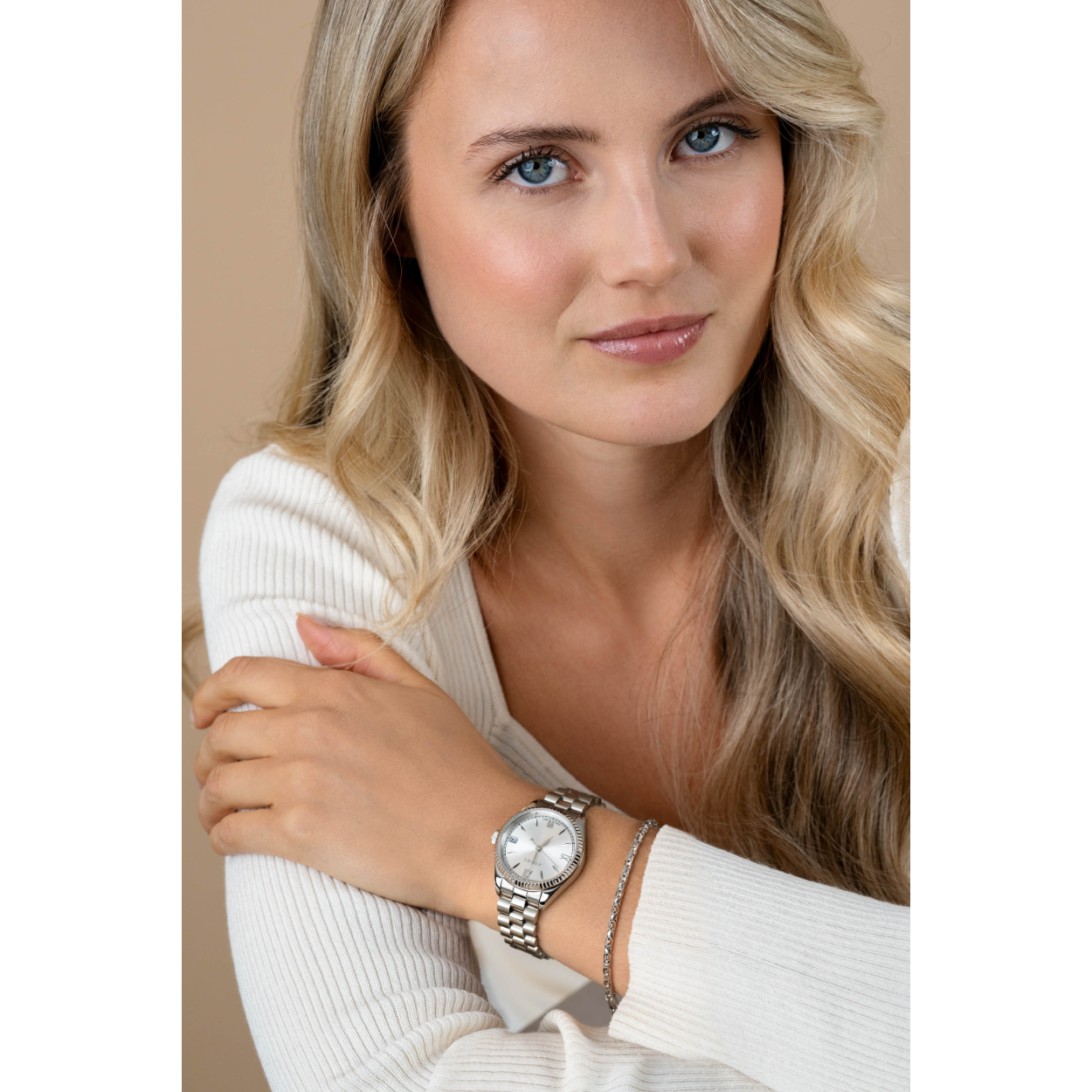 De ICONIC watch van ZINZI heeft een herkenbaar tijdloos ontwerp en een subtiel formaat van 30mm. Voorzien van een opvallende zilverkleurige gekartelde rand rondom het glas, dat zorgt voor een schitterende luxueuze uitstraling. Het dameshorloge heeft een zilverkleurige 'sunray' wijzerplaat met Romeinse cijfers, datum met dag-aanduiding en een stoere stalen band met chique clip-sluiting. Leuk detail: de seconde wijzer met een subtiel hartje. Ook 5atm waterbestendig (tegen regen en spatwater) en met sterk mineraal glas.